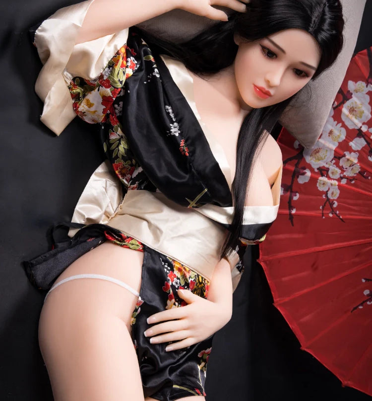 She is wearing an elegant kimono, and her black hair falls like a waterfall, revealing a strong sense of oriental beauty. Her delicate face and soft smile exude a mysterious temptation, like a gentle Japanese girl, ready to become your ideal partner at any time. Every movement and expression of hers is full of tranquil beauty, making you feel deeply attracted.