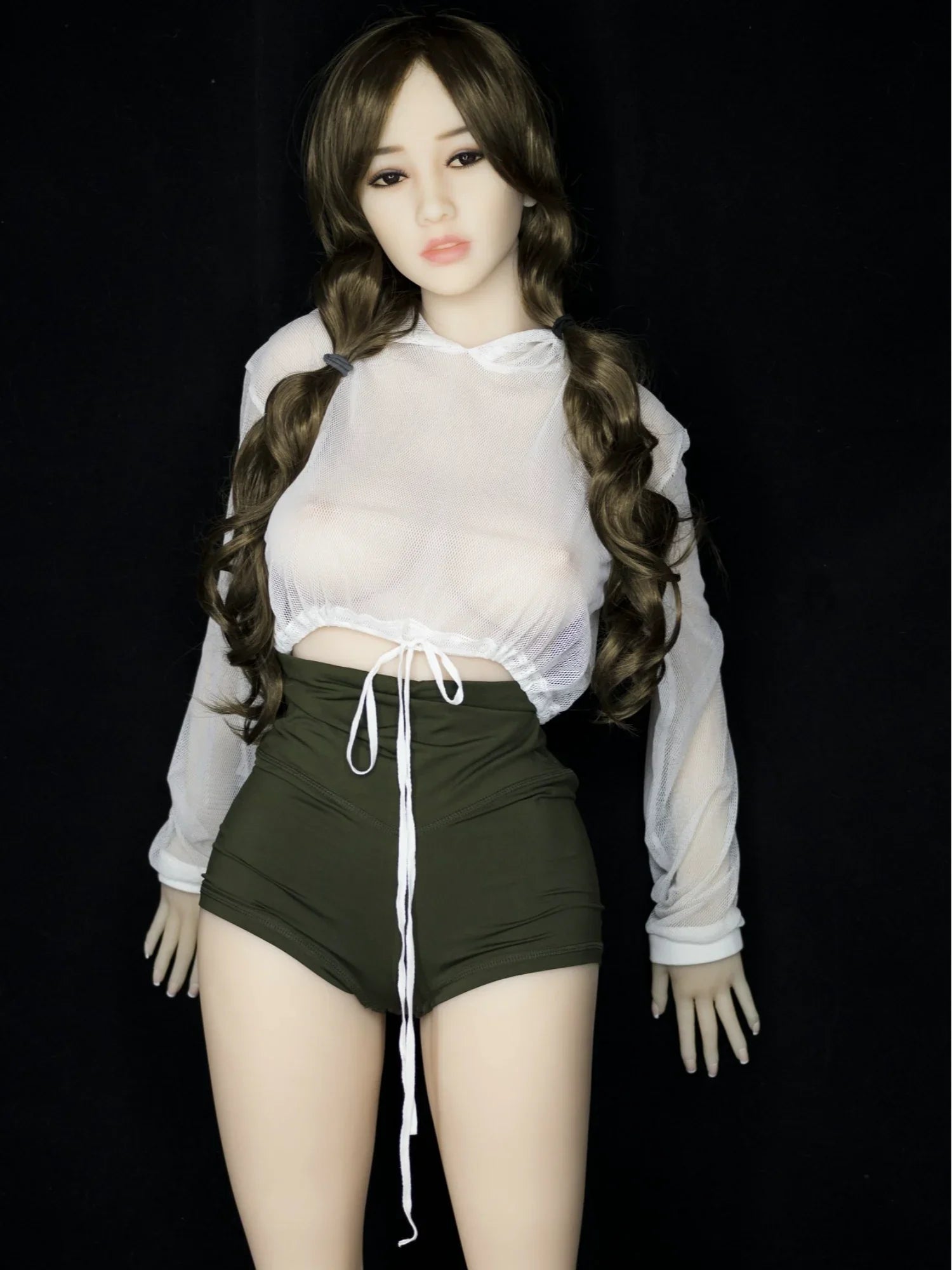 she is a petits sex doll girl in 154cm/5ft1 with a small wait, D cup breasts. she has a beautiful realistic face and skin touch with a flexiable body features which allow you to post her in any postures you want. take her home and having a hot sex life between you and her.