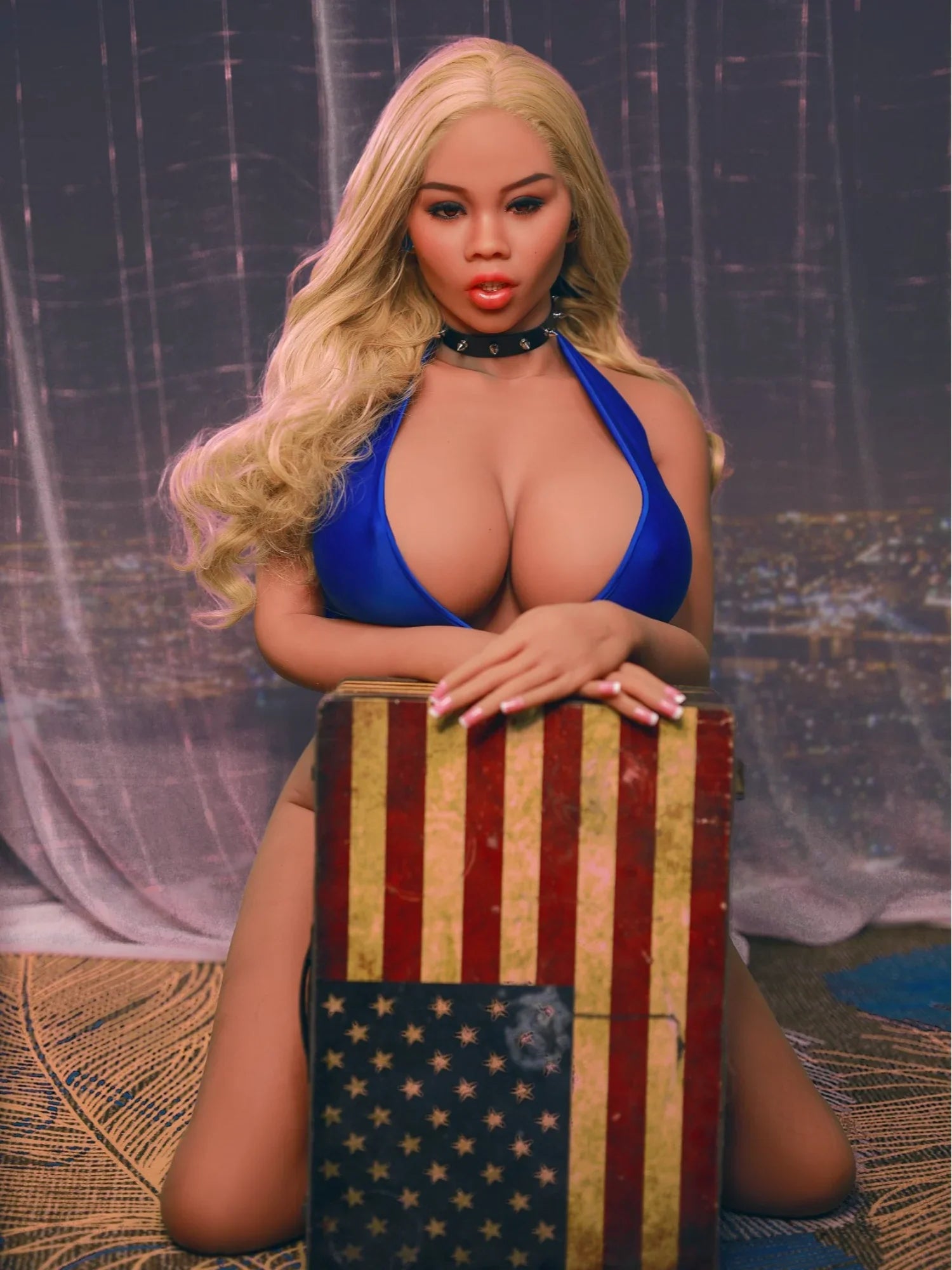 she is a MILF sex doll with blond long curly hair. The body is well-proportioned and the lines are perfect.Big breasts and sexy buttocks will definitely make you want more from her.she has a beautiful realistic face and skin touch with a flexible body features which allow you to post her in any postures you want. take her home and having a hot sex life between you and her.