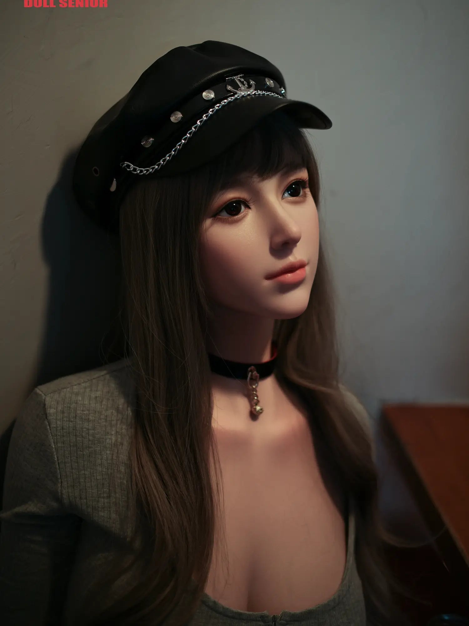 This doll channels Tokyo street-style sophistication. Voluminous waves cascade down her shoulders, catching light with every slight tilt of her head. Her half-smile—warm as matcha latte steam—and sparkling doe eyes radiate approachable elegance. The edgy leather beret and minimalist modern outfit strike a balance between trendy and timeless, capturing the magnetic allure of a Shibuya fashionista who knows her power lies in subtlety.