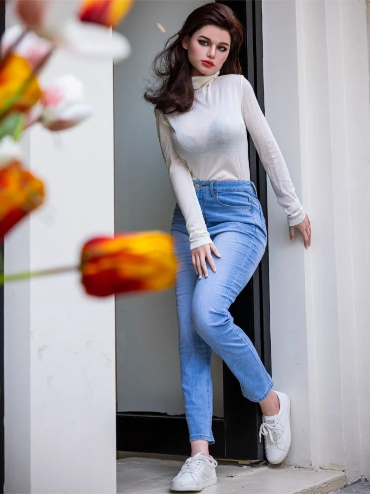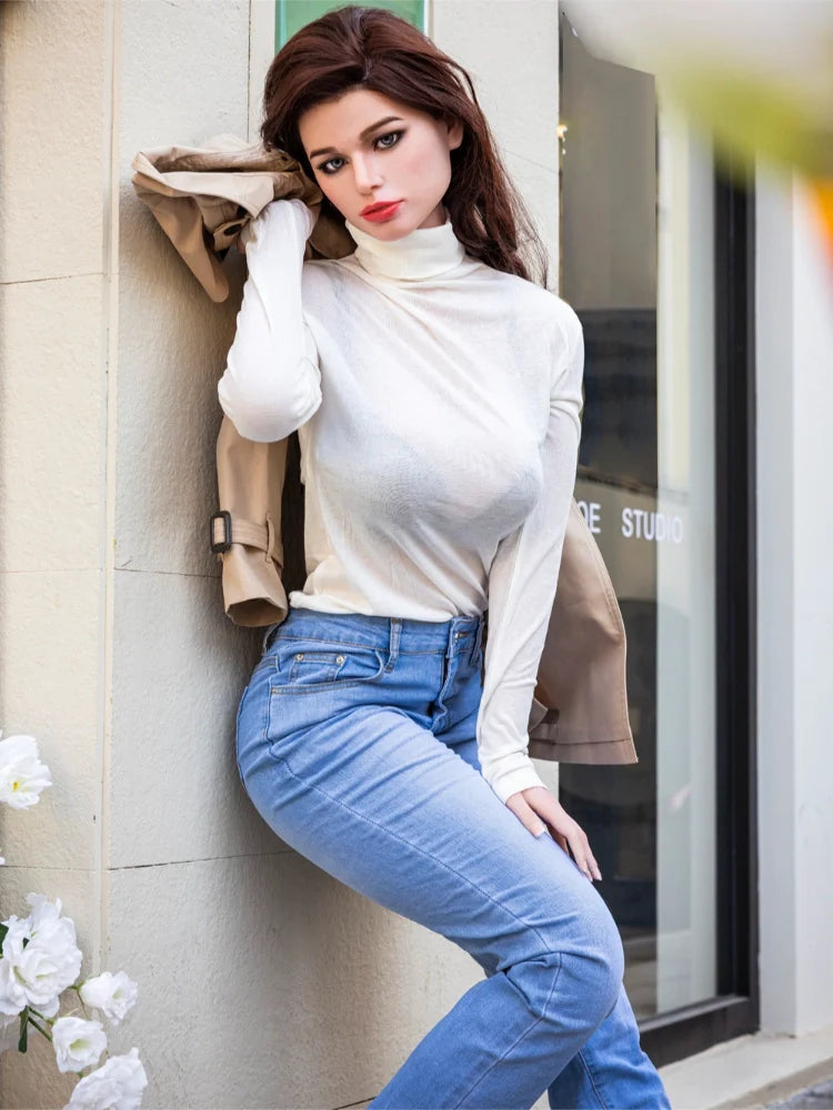 Introducing Christina, the stunning 171cm/5ft6 D cup silicone sex doll with a light tan skin tone and auburn hair. With measurements of 85.5-56.5-89cm and a weight of 26.5kg (after weight reduction), her curvy figure and realistic features are sure to enhance your experience. Made with the expertise of Starpery Doll, she is the perfect choice for a lifelike companion.