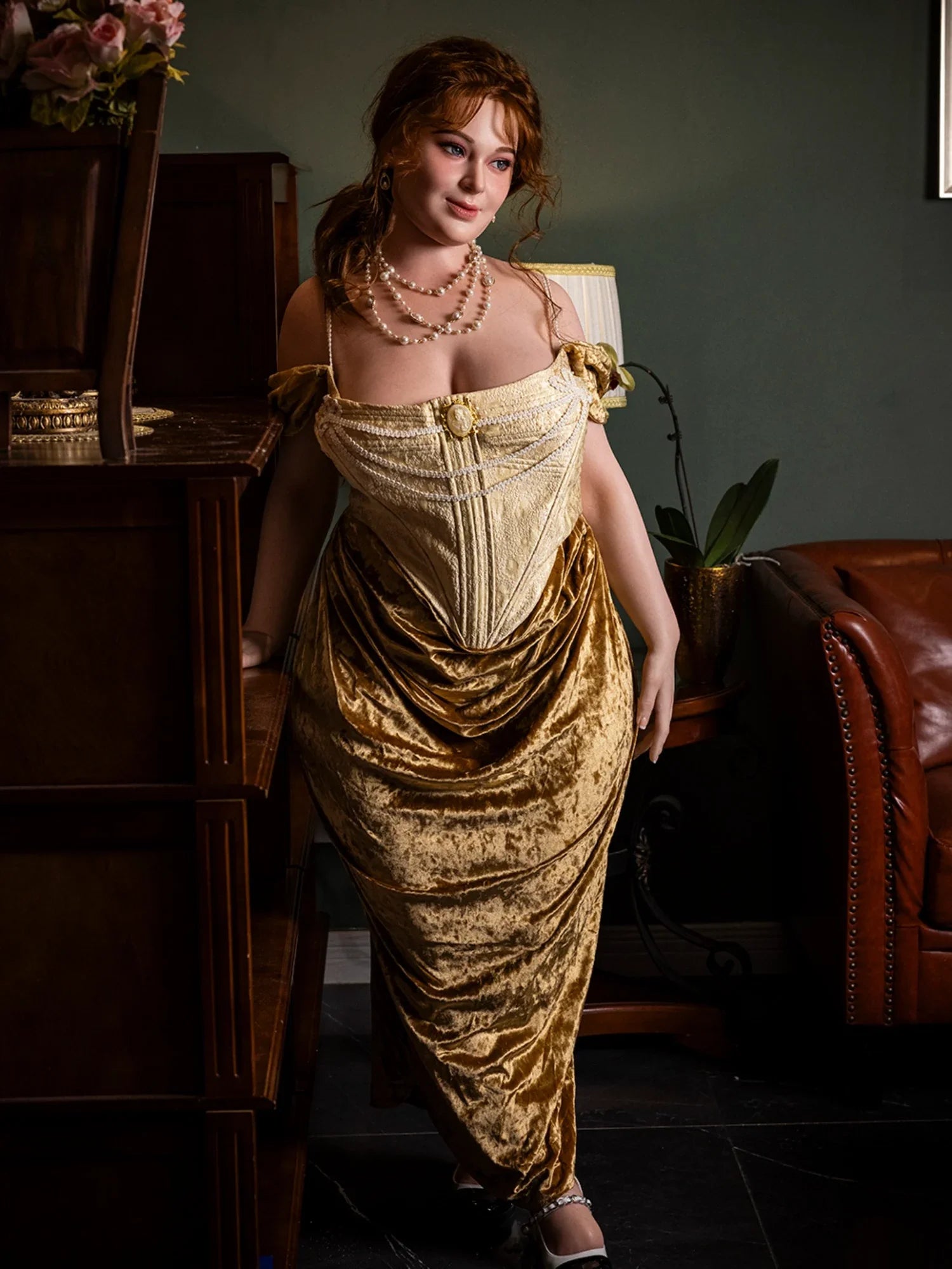 Meet a woman who looks like she just stepped out of your wildest fantasies—flawless, lifelike, and irresistibly captivating. Her porcelain skin radiates warmth, with subtle pores and delicate blush that mimic real blood flow. The faint smile playing on her lips feels intimate, almost as if she’s sharing a secret just for you. Every detail, from the faint laugh lines to the glossy golden evening gown draped across her voluptuous frame, is crafted to blur the line between silicone and reality. When you gaze into her eyes, you won’t just see a doll—you’ll feel like you’re embracing a real woman, ready to ignite your deepest desires.