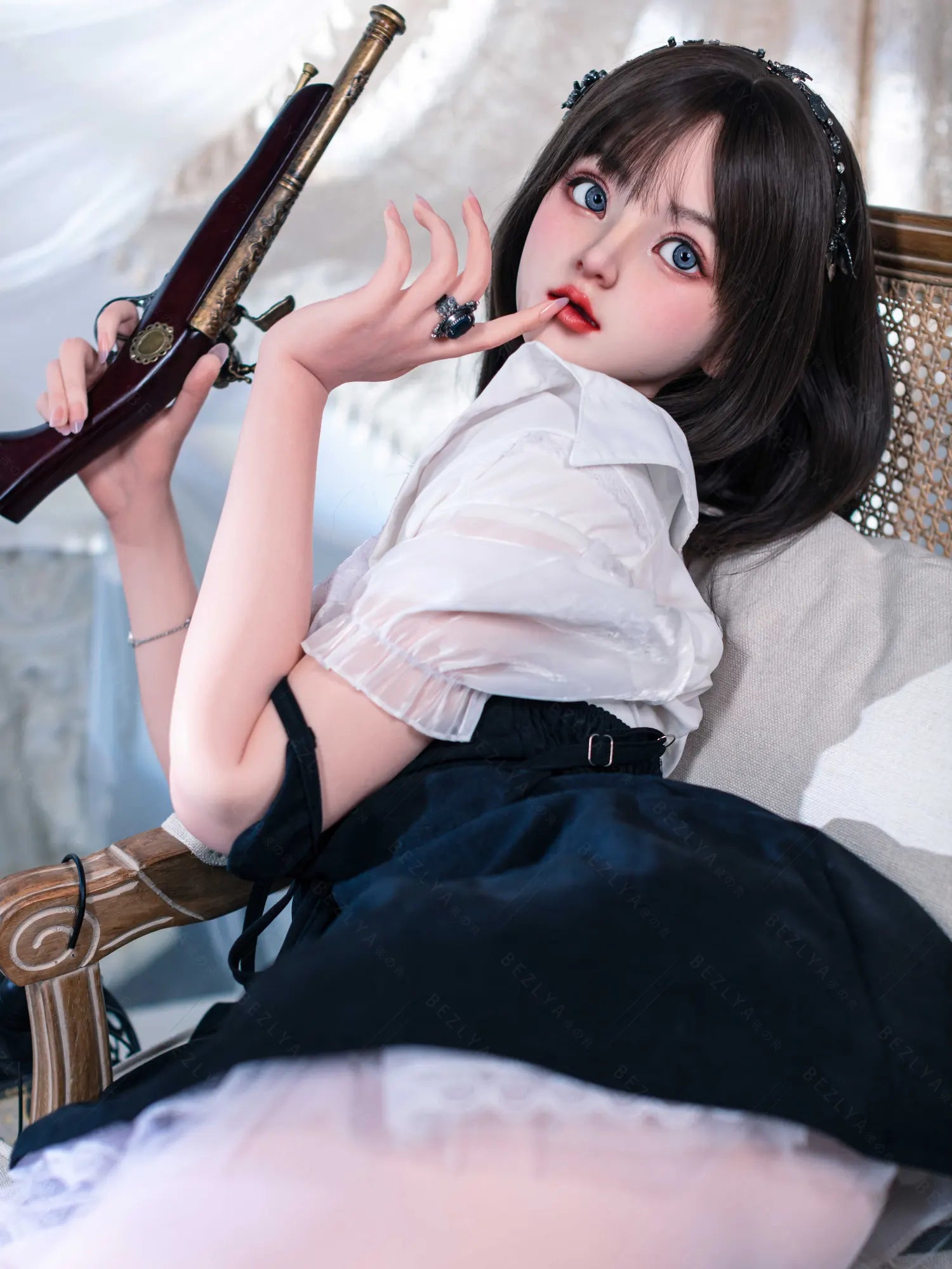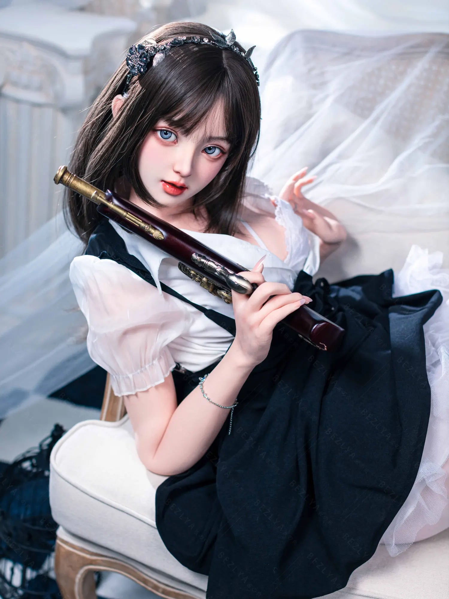 This asian sex doll captures all eyes with her cute short hair and sophisticated look in her short skirted deaconess costume. Her gray eyes are clear and bright, as if full of endless temptation and innocence. Her doll-like face is so delicate and irresistible in every detail that you can't help but want to immerse yourself deeply in her charming charms.